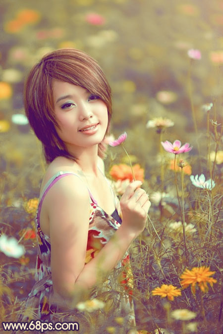 素材图片背景以绿色为主,转为暖色的方法较为简单,直接把绿色部分调成暖色调,暗部则调成暗橙色或暗褐色作为补色。人物及其它部分可以按照自己的喜好美化,总体协调皆可。