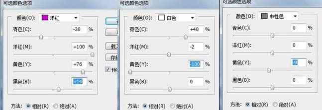 3、再新建可选颜色调整层,设置参数如下。