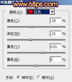 5、创建可选颜色调整图层,对红、黄、白、黑进行调整,参数设置如图11 - 14,效果如图15。这一步调整高光及暗部颜色。