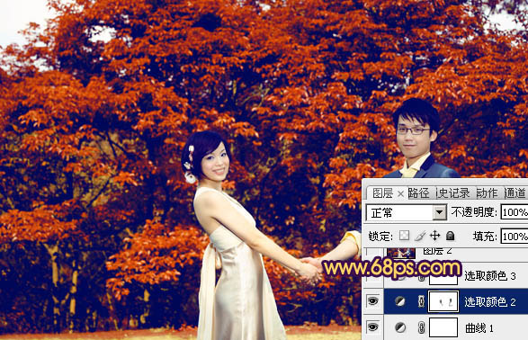 Photosho调出树林情侣图片灿烂的橙红色(4)
