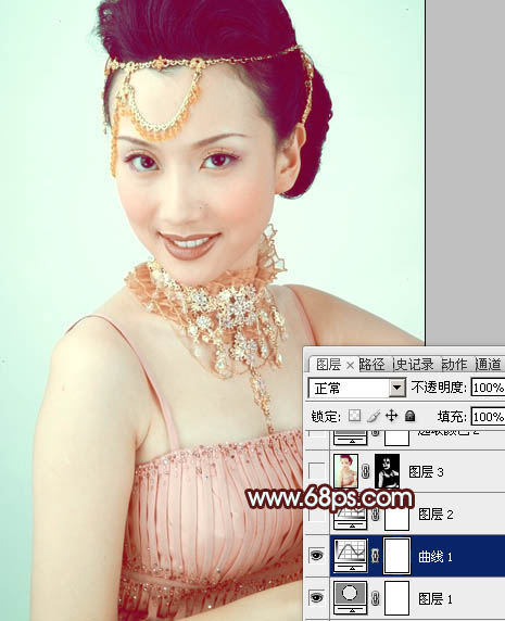 Photoshop调出写真人物图片甜美的粉青色(4)