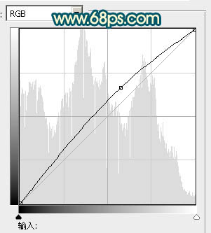 5、创建曲线调整图层,把全图稍微调亮一点,参数设置如图9,确定后只保留人物脸部及周围部分,效果如图10。这一步稍微加强人物亮度。