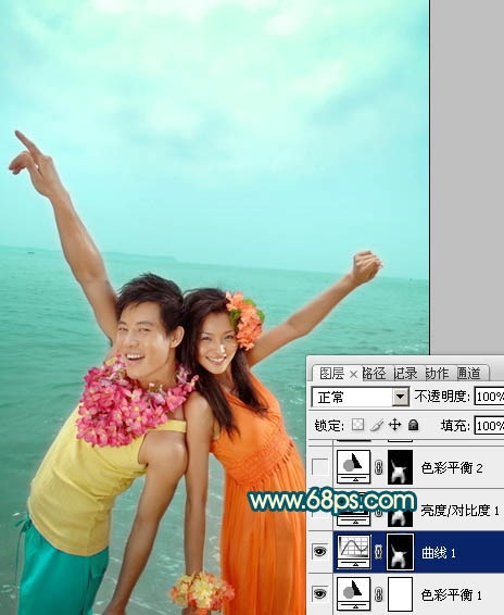 Photosho给海景情侣图片加上艳丽的青黄色(4)