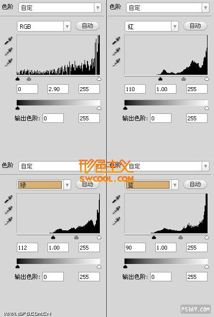 5、再用色阶及其他调整图层调整局部及整体颜色,具体参数设置如下图,图层参数如下图右。