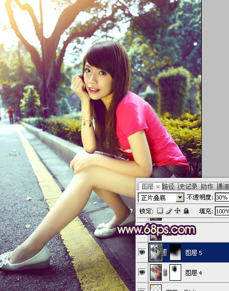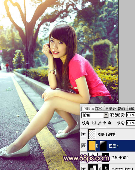 Photoshop调出公路人物图片灿烂的暖色调(7)