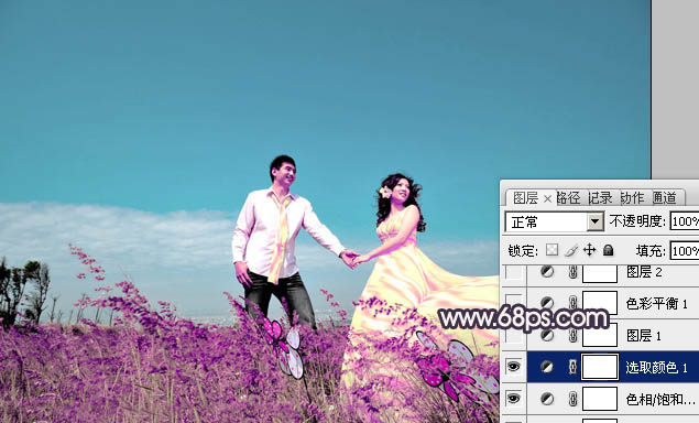 4、按Ctrl + J 把当前可选颜色调整图层复制一层,加强紫色浓度,效果如下图。