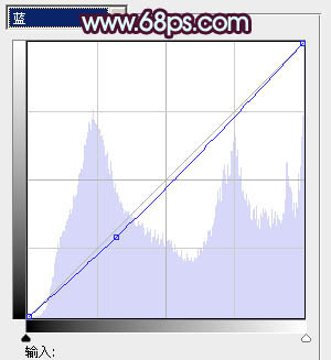 2、创建曲线调整图层,对蓝色进行调整,参数设置如图8,效果如图9。这一步给画面增加一些淡黄色。