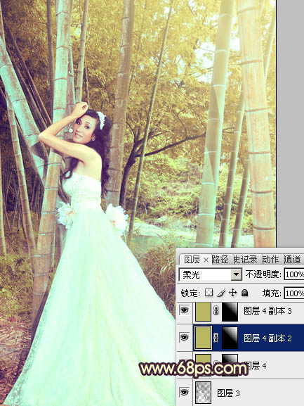 Photoshop打造柔和的黄褐色竹林婚片(5)