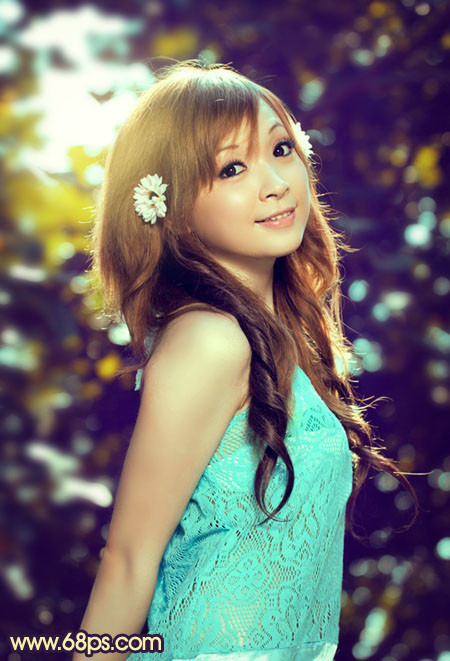 素材图片背景部分较暗,非常适合暗色图片,如暗蓝色,暗紫色。处理的适合只需要调整可选颜色的黑色即可实现快速调色,然后再根据背景颜色协调好人物及局部颜色即可。
