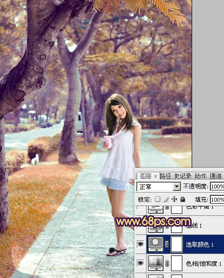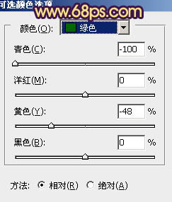 5、创建可选颜色调整图层,对绿、白、中性、黑色进行调整,参数设置如图6 - 9,效果如图10。这一步给图片暗部增加一些蓝紫色。