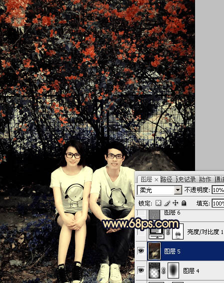 10、新建一个图层,盖印图层。执行:滤镜 > 模糊 > 高斯模糊,数值为5,确定后把图层混合模式改为“柔光”,不透明度改为:10%,效果如下图。这一步把图片适当柔化处理。
