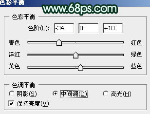 3、创建色彩平衡调整图层,对中间调,高光进行调整,参数设置如图4,5,效果如图6。这一步微调背景部分颜色。
