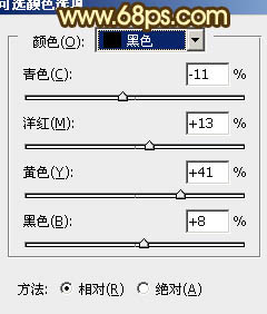 5、创建可选颜色调整图层,对白色,黑色进行调整,参数设置如图9,10,确定后把图层不透明度改为:50%,效果如图11。