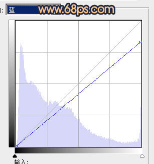 2、创建曲线调整图层,对蓝色进行调整,参数设置如图2,效果如图3。这一步给画面增加一些黄色。