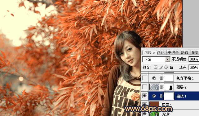 Photoshop调出竹林美女图片甜美的橙红色(2)