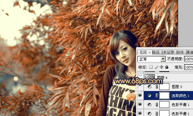 Photoshop调出竹林美女图片甜美的橙红色(5)