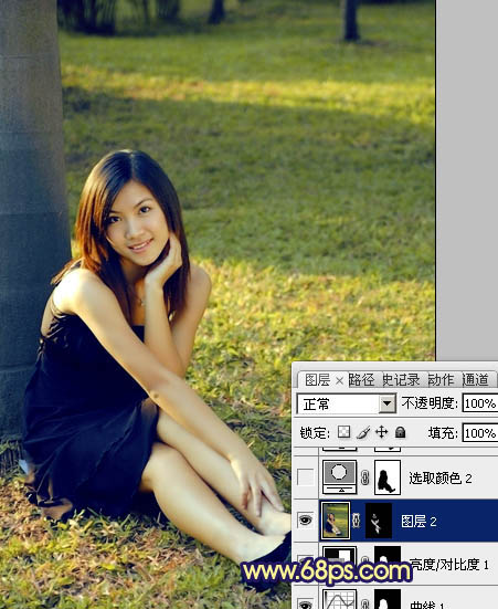 Photoshop调出草地美女图片柔美的淡黄色(4)