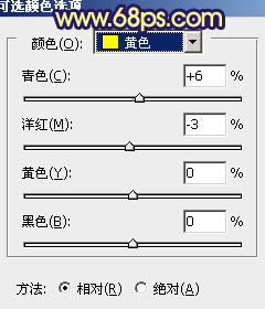 9、创建可选颜色调整图层,对黄、白进行调整,参数设置如图24,25,效果如图26。这一步微调黄色及高光部分。