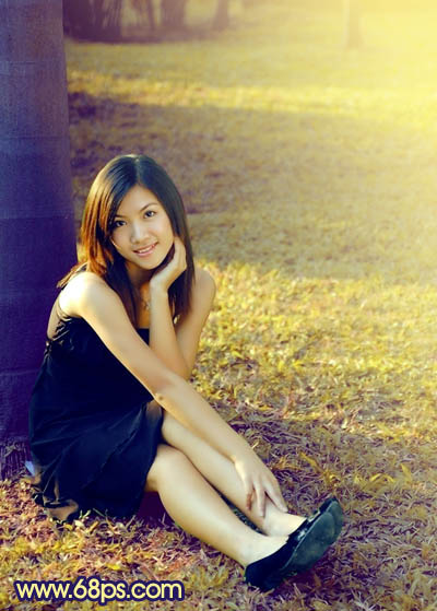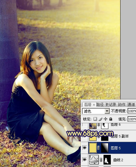 Photoshop调出草地美女图片柔美的淡黄色(8)