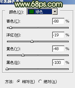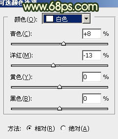 1、打开原图素材,创建可选颜色调整图层,对黄、绿、白进行调整,参数设置如图1 - 3,效果如图4。这一步把背景绿色转为青色,淡黄色部分转为橙黄色。