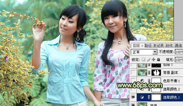Photoshop调出树林美女图片甜美的淡黄日韩色(2)
