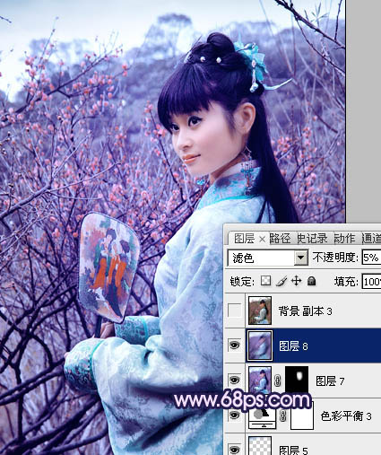 Photoshop调出古装人物图片漂亮的古典蓝红色(8)