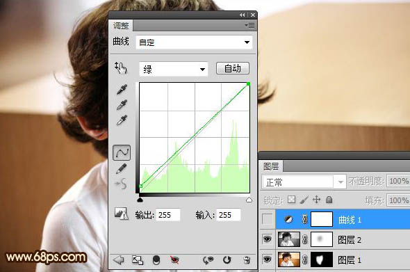3、创建曲线调整图层,分别调整绿/蓝/RGB,参数如图,效果如图。