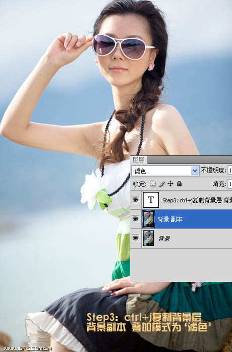 3、按Ctrl + J 把背景图层复制一层,得到背景副本图层,混合模式改为“滤色”,效果如下图。