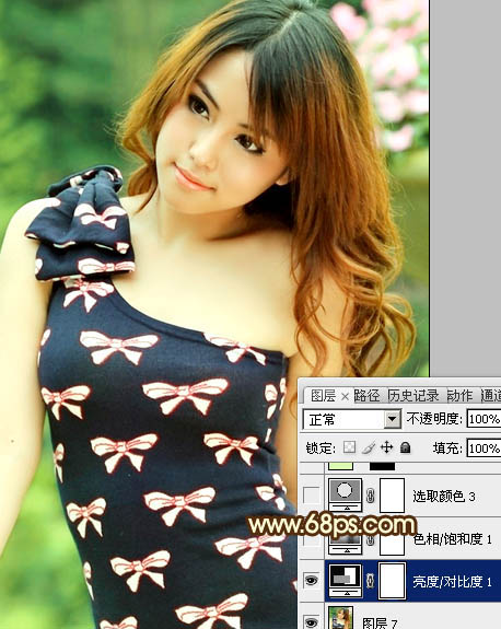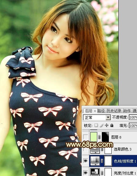 Photoshop给偏暗美女图片增加清爽的黄绿蜜糖色(8)