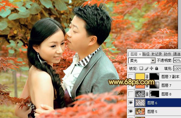 Photoshop打造柔美的橙红色树林婚片(7)