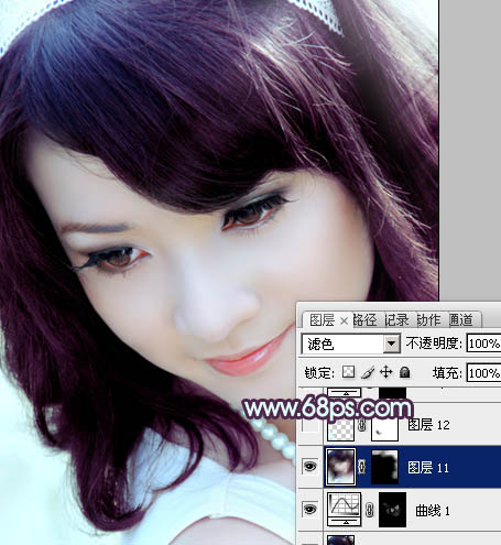 Photoshop调出美女头像图片经典的朦胧紫色调(9)