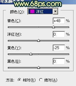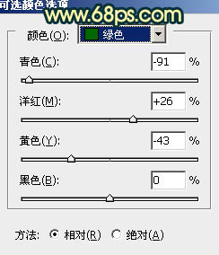 4、创建可选颜色调整图层,对绿、洋红、中性色进行调整,参数设置如图13 - 15,效果如图16。这一步增加图片的洋红色。