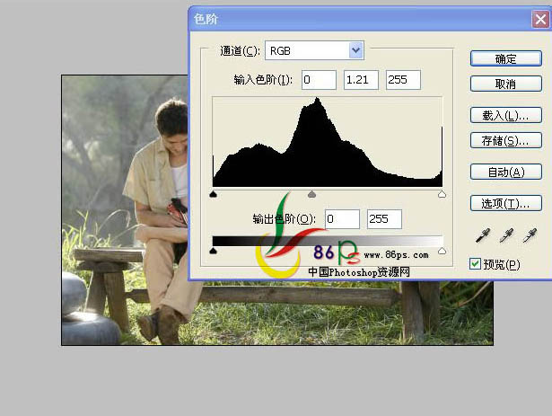 2、添加一个色阶调整层,参数如下。