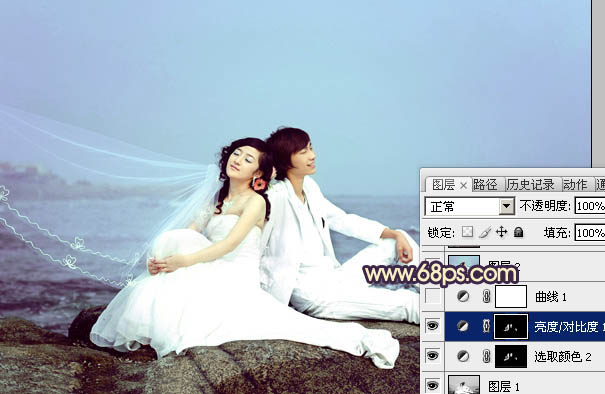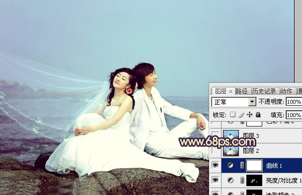 Photoshop调出海景婚片淡雅的青紫色(5)