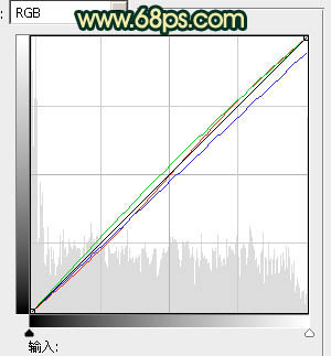 7、创建曲线调整图层,微调一下红、绿、蓝,参数设置如图23,确定后适当降低图层不透明度,效果如图24。