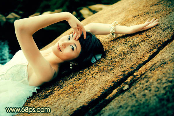 Photoshop给石壁上的美女增加漂亮的黄青色(7)