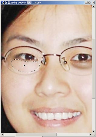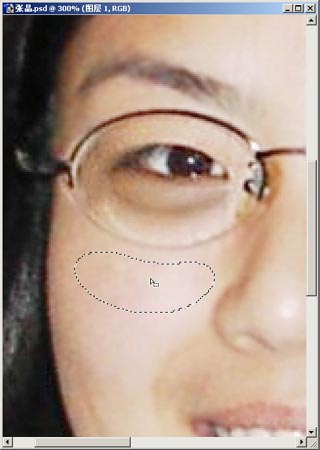第二步:在选区中单击鼠标左键并按住不放,拖动选区到脸部光滑的地方,接着按“Ctrl+C”拷贝选区,然后Ctrl+V键粘贴(图2)。