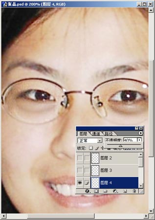 第四步:在“图层”面板中调节刚复制图层的“不透明度”到40%(图4)。