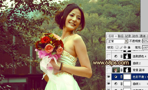 Photoshop打造流行的青褐色外景婚片(4)