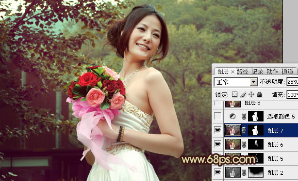 10、新建一个图层,盖印图层。进入通道面板,选择绿色通道按Ctrl + A全选,按Ctrl + C 复制,选择蓝色通道按Ctrl + V 粘贴,回到图层面板,效果如图21,确定后按住Alt键添加图层蒙版,用白色画笔把人物部分擦出来,再把图层不透明度改为:25%,效果如图22。