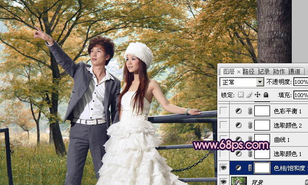 Photoshop打造漂亮的橙蓝色树林婚片(2)