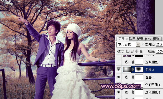 Photoshop打造漂亮的橙蓝色树林婚片(6)