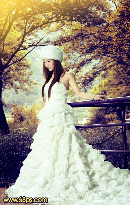 树林图片比较好调色,只需要把绿色部分转为自己喜欢的颜色即可。暗部及高光部分可以适当再加入一些补色,增强画面的层次感。
