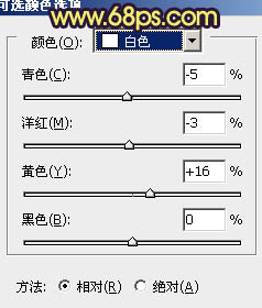 1、打开原图素材,创建可选颜色调整图层,对黄、绿、白色、中性色、黑色进行调整,参数设置如图1 - 5,效果如图6。这一步把绿色换为黄色,暗部转为蓝色。