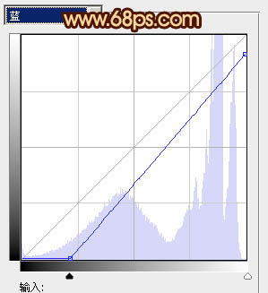 2、创建曲线调整图层,对蓝色进行调整,参数设置如图4,效果如图5。这一步给画面增加暖色。