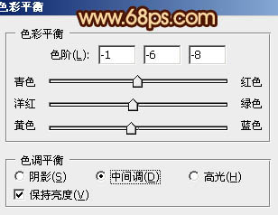 6、创建色彩平衡调整图层,对中间调,高光进行调整,参数设置如图14,15,效果如图16。这一步微调画面的主色。