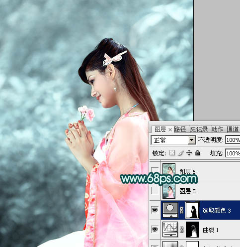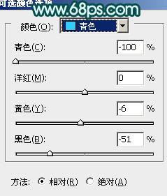 8、创建可选颜色调整图层,对青,白进行调整,参数设置如图12,13,确定后用黑色画笔把人物部分擦出来,效果如图14。这一步简单调整背景部分颜色。