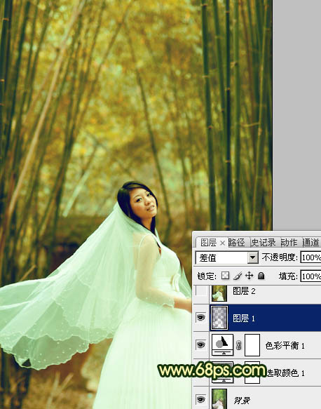 Photoshop调出竹林婚片漂亮的古典黄绿色(3)