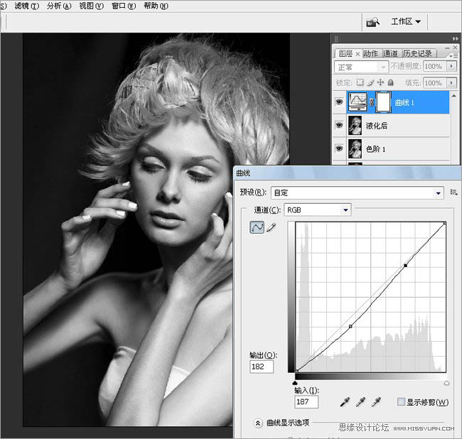 7、现在感觉整体还是偏亮,曲线整体的压暗。