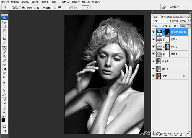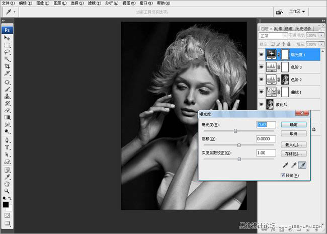 12、现在看全图感觉,胳膊有点亮,抢视线,用曝光度压暗胳膊。
